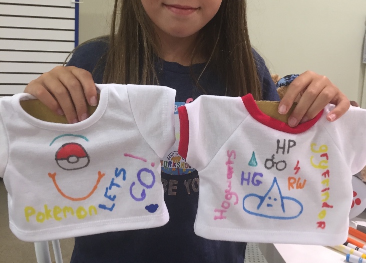 Needless to say we had fun and loved being in the creative setting sketching out our T-Shirts, which were branded Pokemon and Harry Potter, plus an unplanned, new addition to the family was also introduced, Snoozy the Gorilla!   It really was a lovely day and great to see her with a big smile on her face.